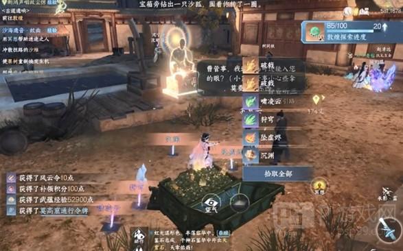 2、首先要去地图的(1707,1615),解锁大宝箱获得【安行如山】特质可以抵御风沙,不然遇到风沙天气寸步难行