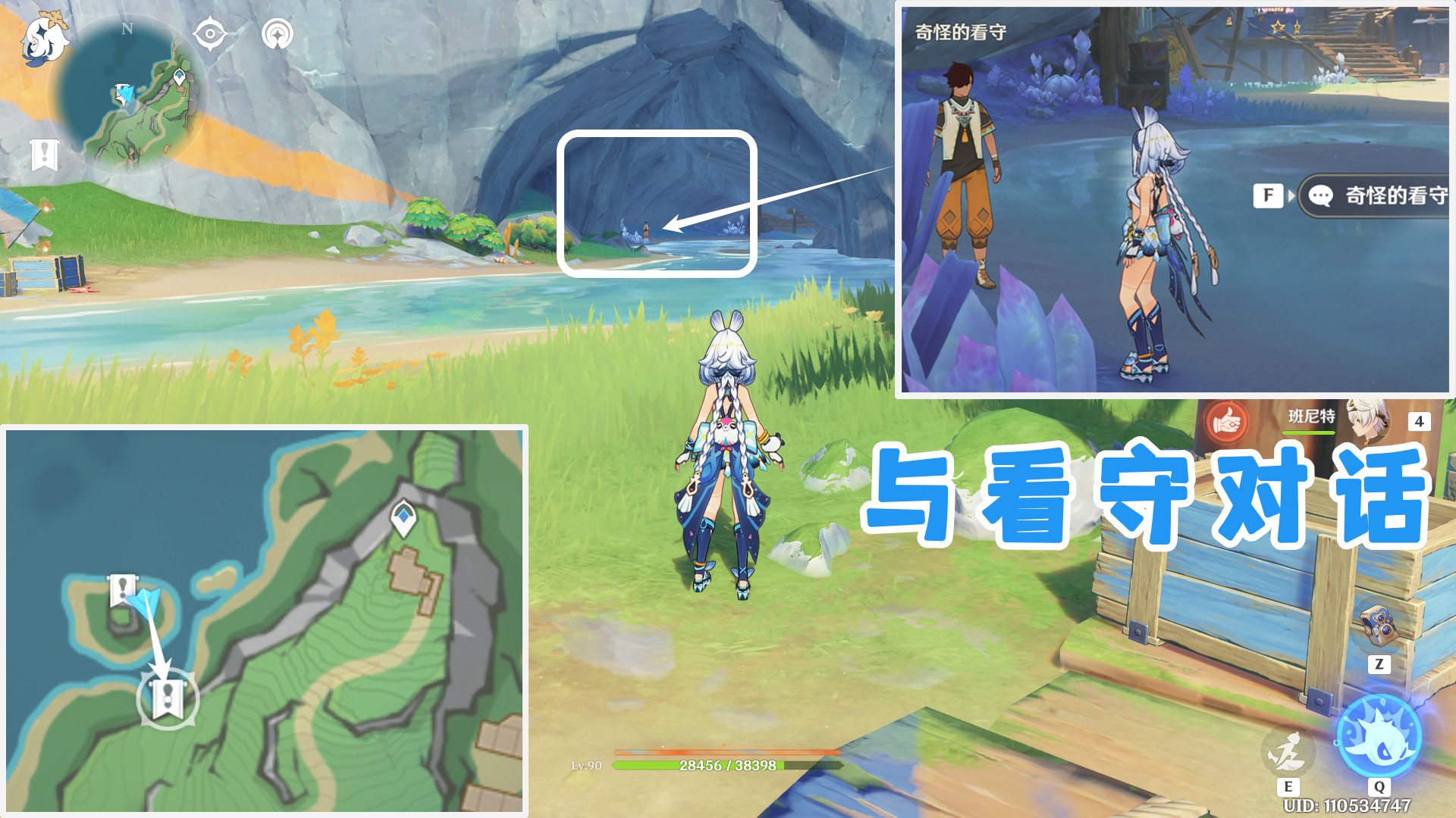 拿到邀请函后,往东南方向看就能看见一个站着守卫的山洞入口,