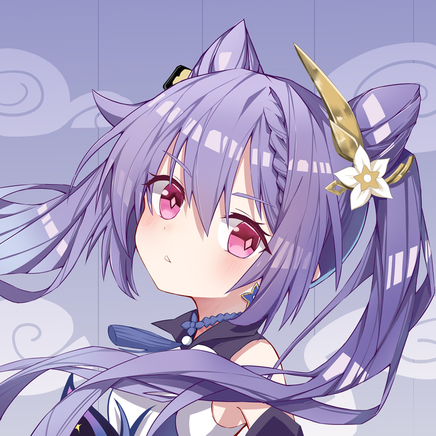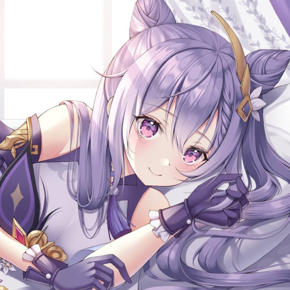 1、刻晴全身都是紫色的,紫色头发搭配紫色衣服,全是少女的样子;