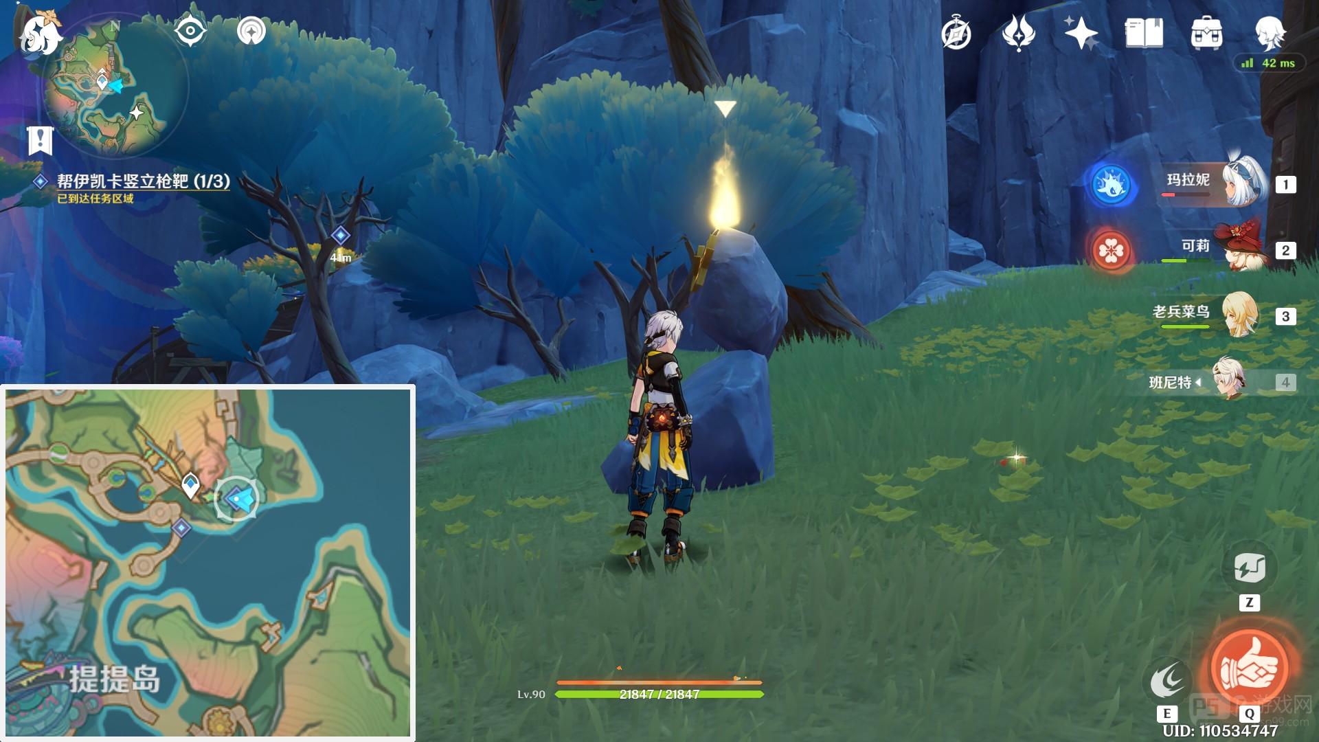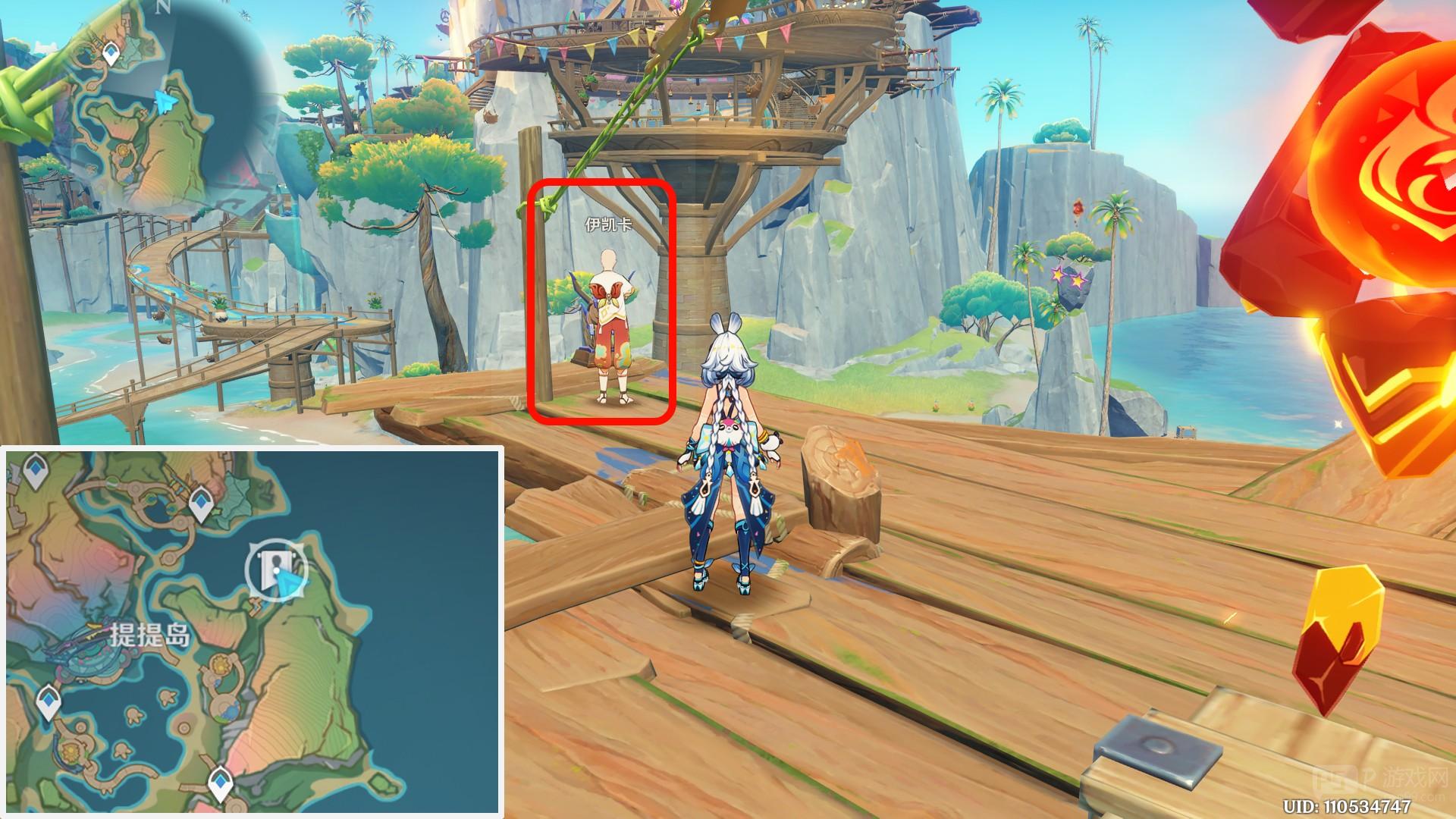 来到「提提岛」东北方下图位置,就能看见一个光头「伊凯卡」,对话即可接取任务。