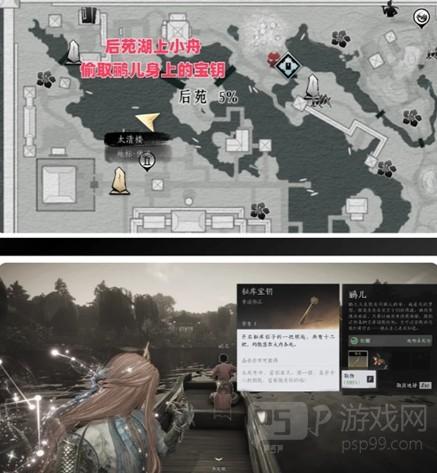 2、第2把宝钥:后苑湖上小舟偷取鹂儿身上的宝钥。
