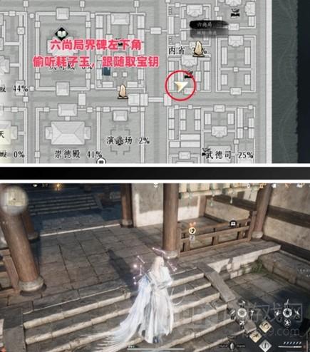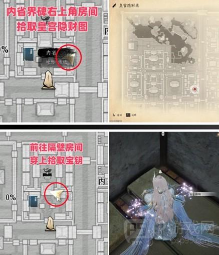 11、第11把宝钥:内省界碑右上角房间拾取皇宫隐财图,前往隔壁房间床上拾取宝钥。