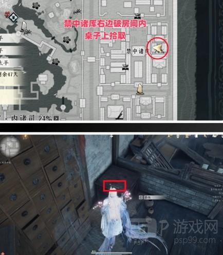 4、第4把宝钥:禁中诸库右边破房间内桌子上拾取。