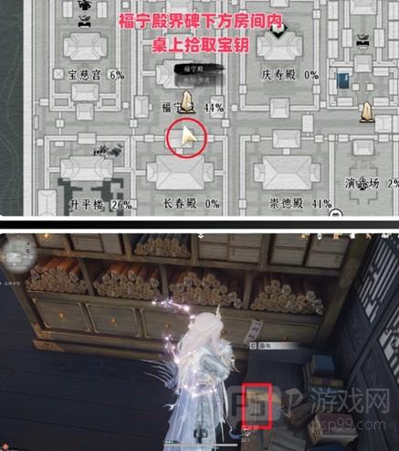 7、第7把宝钥:福宁殿界碑下方房间内,桌上拾取宝钥。