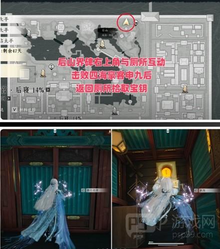 8、第8把宝钥:后山界碑右上角与厕所互动,击败四海豪客申九后,返回厕所拾取宝钥。