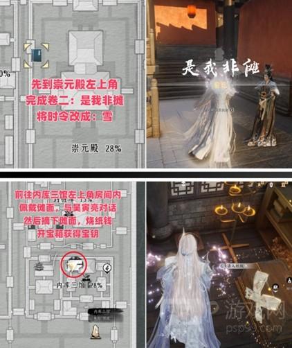 12、第12把宝钥:先到崇元殿左上角完成卷二:是我非摊将时令改成:雪,前往内库三馆左上角房间内佩戴傩面,与吴寅亮对话然后摘下滩面,烧纸钱,开宝箱获得宝钥。