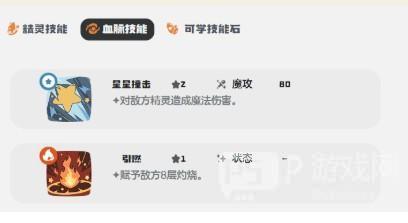 入场时不同血脉可以赋予自身增益,还有削减敌人的属性,可以给队友抢占先机。技能搭配就是核心,主要的就是伤害和功能结合,新手直接照抄就能够使用。输出核心就选择星星撞击和荆棘爪,可以打出80点高额魔法伤害,还可以补充80点物理性伤害,魔武双修就可以覆盖不同类型的敌人。功能技能,那自然就应该选择引燃,可以给对手挂上8层灼烧,搭配火属性精灵,就可以迅速的实现伤害翻倍。在打持续输出时是比较好用的。