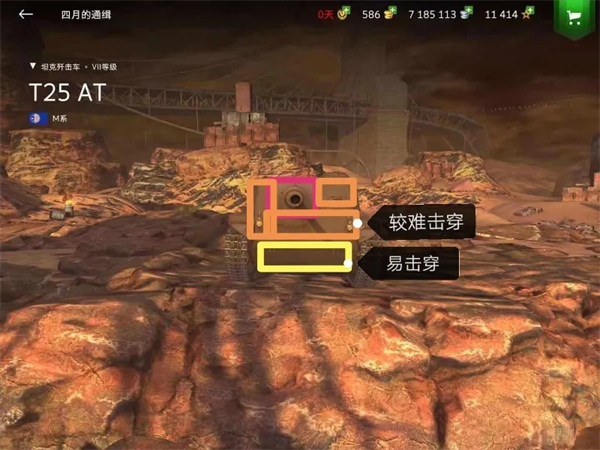 然后就是机动了,和地狱猫一样,T25 AT的移速在td中也是非常优秀的,40的高转速给了它防绕的可能。火力上也是不错的,完全体的105炮射速和单伤都非常不错,AP穿深已经足够应付大部分七级ht了,并且它还有优秀的10度俯角,这使它可以适用于福煦的垫坡打法来增加装甲等效并正常输出。