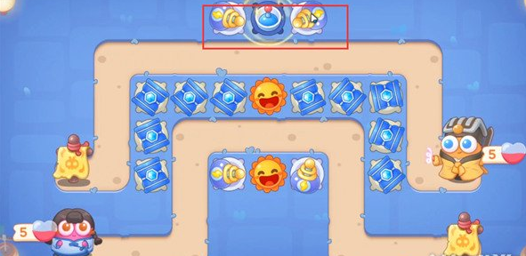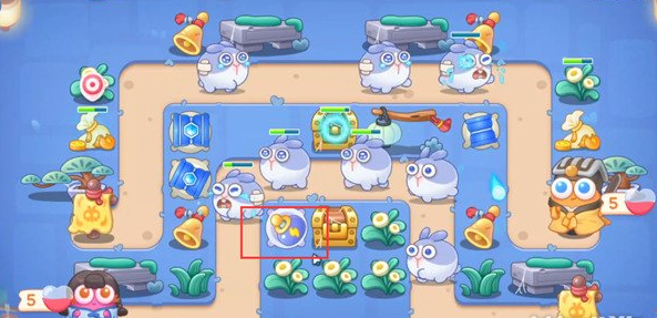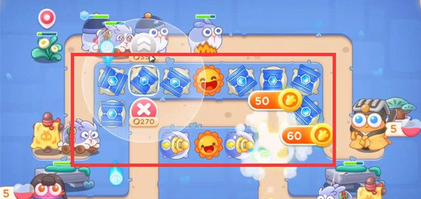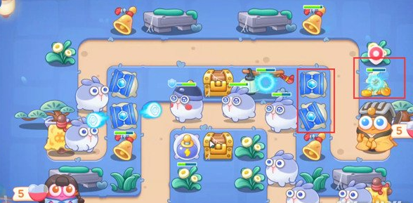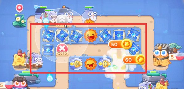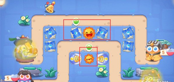 4、我们优先打宝箱,掉落炮塔太阳花,在太阳花周围放冰锥塔,升满级。
