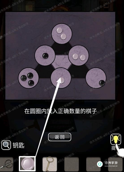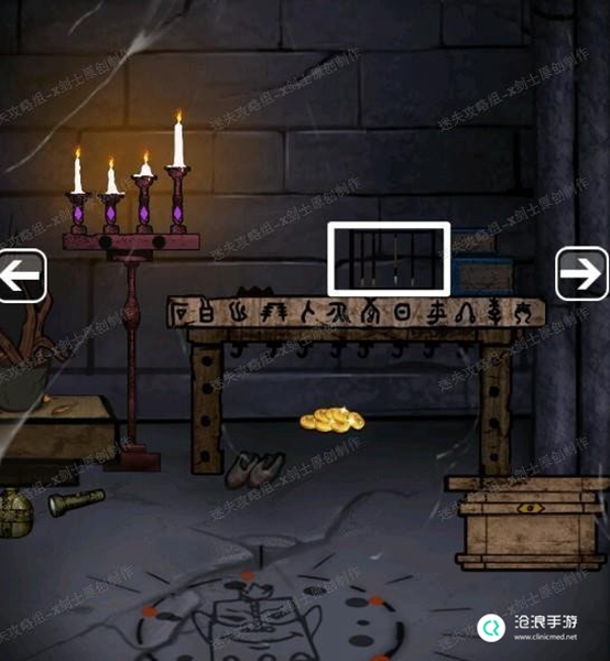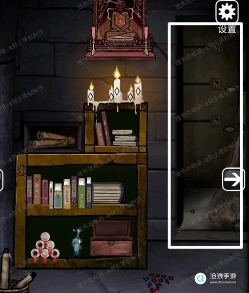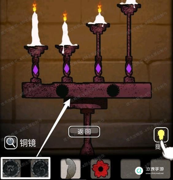 25、使用剪刀将中间的图形取下来得到梅花快。返回最初的房间,将两个铁片放在烛台上,启动机关,这个小游戏玩法是点击生气所有的蜡烛台,当落下到同一高度的时候滑屏熄灭烛火。42.1