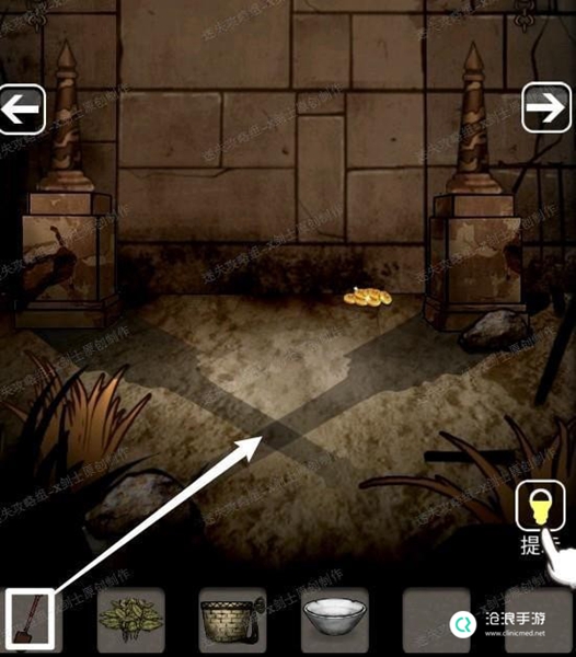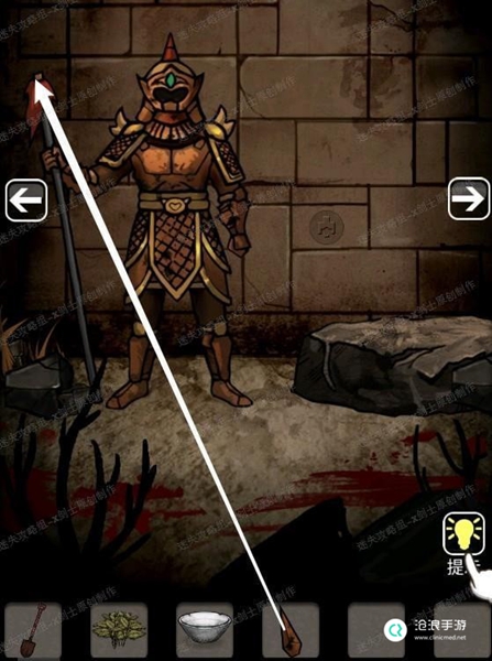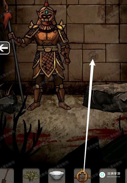 1、点击铠甲雕像左下角的绳子,向右走点击药农篮子上面的药草,还有药篓子18.1
