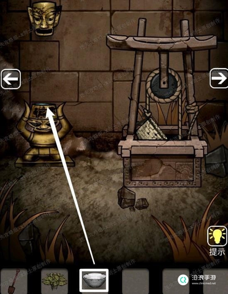 10、来到古井房间,将青铜器皿放在青铜上,使用碗点击青铜器皿上面的水,得到装有水的碗。27.1