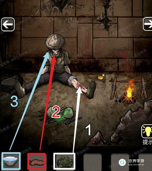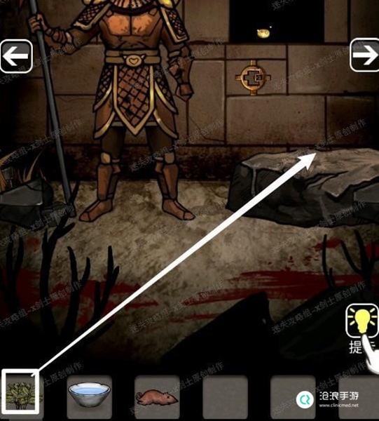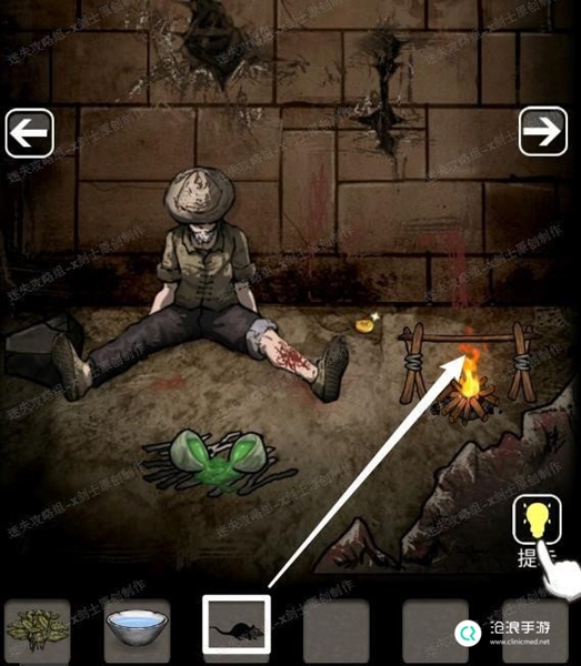 12、将老鼠放在火上烤得到老鼠肉(首先先点进火堆),回到铠甲在的方向,将药草放在大石头上,经过一个小游戏就可以得到药草。29.1