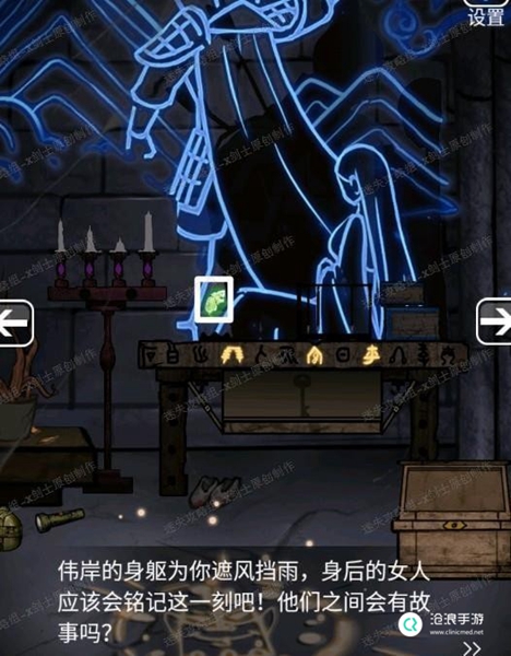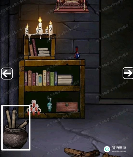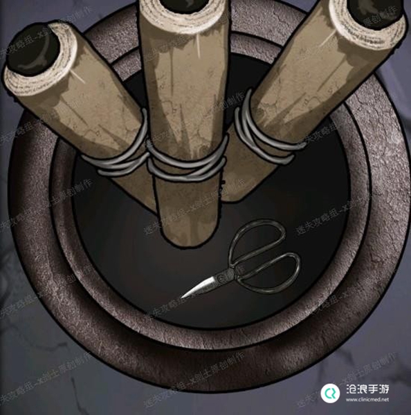 (在这里一定要注意,这个时候门分开两边,点击左边可以进入隐藏的剧情,进入右边则跳过直接进入下一章)【第二章-下】15、进入内部之后,向右走点击左下角装有书简的壶子里找到剪刀(需要拨开书简)。32.1