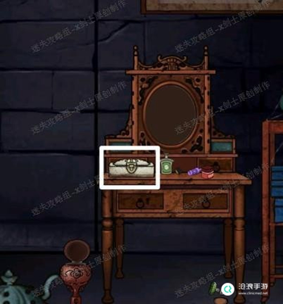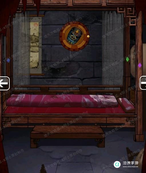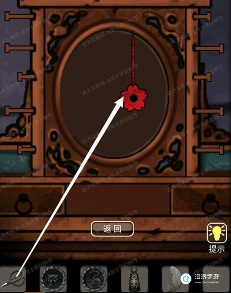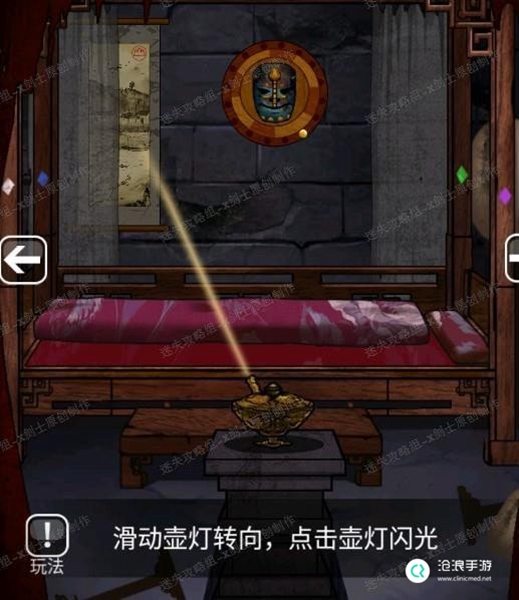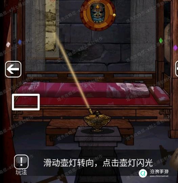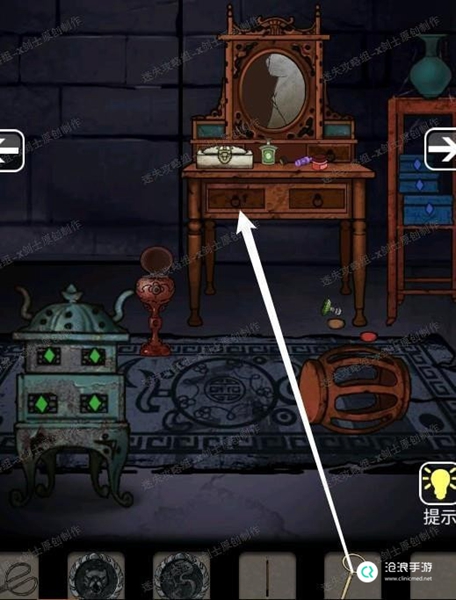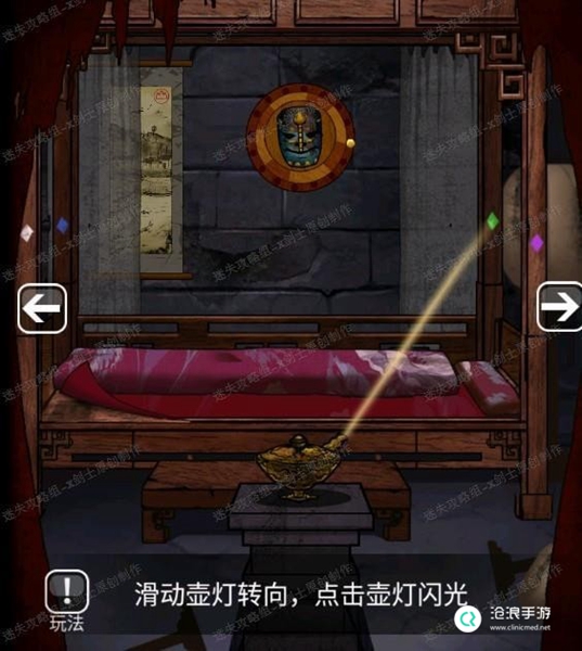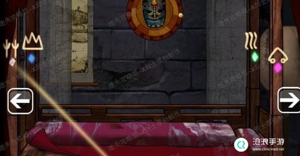 24、点击床的角落得到一个图形,这个是镜子的提示,牵动镜子附近的插槽启动镜子。可以得到铜镜。41.1