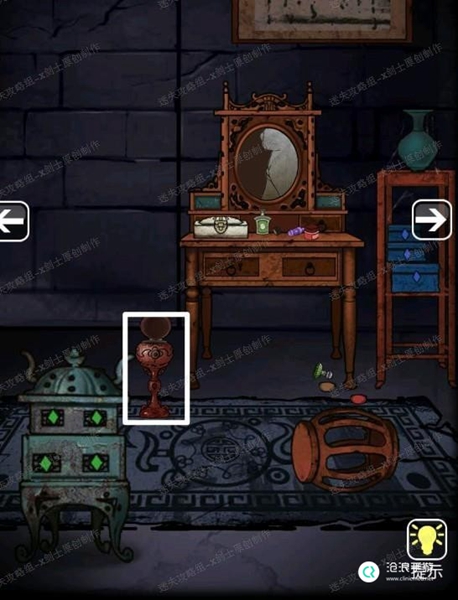 18、来到破碎的镜子的房间,点开地上的壶子,里面就会出现一把钥匙。35
