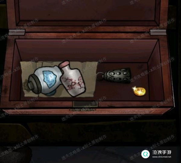 29、将铁砣放入书桌下面亮光的地方,就可以得到一把钥匙,打开右下角的箱子之后会有一个磷火逃走,箱子内还有一个铃铛。46.1