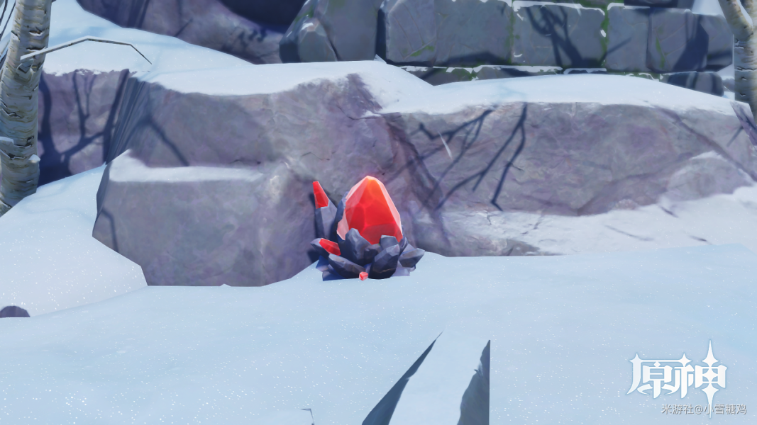 8、第三个比较难找,就在刚才打冰丘王的上面山头。爬上来有一个风元素柱,点亮了有风场可以飞到对面去。最后一个红玉就在那