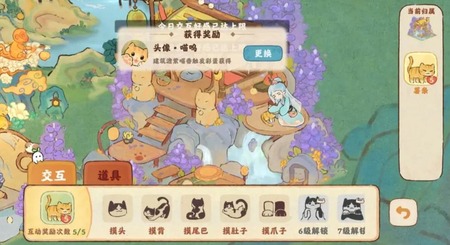2、之后进行撸猫,过一会就会弹出获得头像喵呜的奖励提示了。