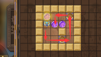 5、先往左边走将最后一个珠子向下推一格,然后绕到这个珠子左边将其推到凹槽内即可通关。