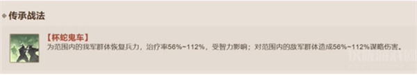 效果:为范围内的我军群体恢复兵力,治疗率56%-112%,受智力影响;对范围内的敌军群体造成56%-112%谋略伤害。