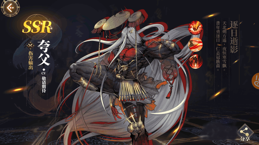 夸父的被动是收割属性,用来配合队伍中aoe伤害角色打出更高的伤害,也能更好的发挥夸父被动的特性,所以如果有小伙伴想玩夸父的话,就要好好考虑阵容的搭配选择,怎么样才能最大化的利用夸父的收割特性。