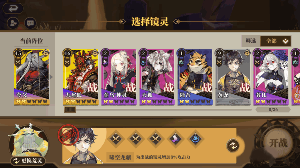 镜灵搭配:黄龙+夸父+九尾狐+天狐+云芝+金乌·仲灵