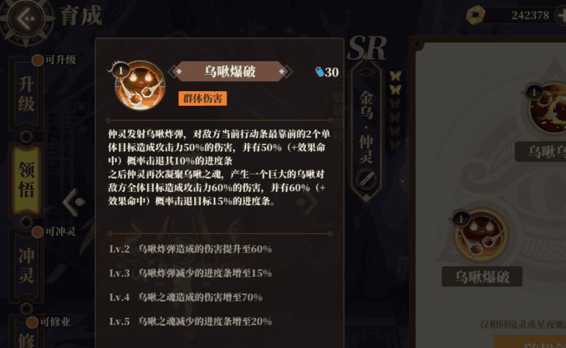 有金乌·仲灵的可以选择仲灵,没有的话可以选择青鸟,青鸟能拉友方一个单位还有伤害加成。不过仲灵还是第一选择,毕竟有小幅度群伤+击退行动条的控制能力,还能满足灵阵buff。