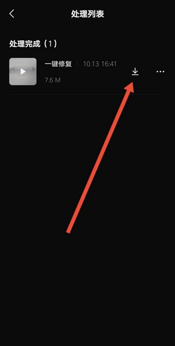 6.上传完成后,等待软件一键修复完成,再点击视频后面的按钮就能将视频保存到手机上。
