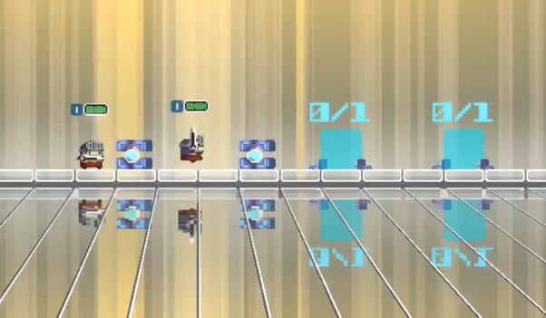 1、首先玩家使用两个近战角色将箱子推入格子。