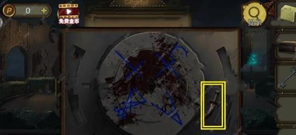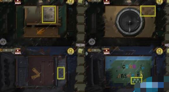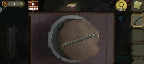11、用锋利小刀割断木桩上绳子,得到带绳子空桶。点小船,拿保险箱上的开琴器,点船帆,捡起继电器。根据4个地方不同画像提示,调整保险箱上眼睛方向得到木塞和溶胶剂。