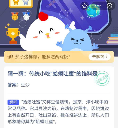相信小伙们都听说过,有一种传统小吃“蛤蟆吐蜜”,但是你知道这种小吃中的馅料是什么吗?在今天的支付宝蚂蚁庄园中,“蛤蟆吐蜜”小吃中的馅料到底是什么,想知道正确答案的小伙伴们,赶紧和小编一起看看11月3日的正确答案吧。