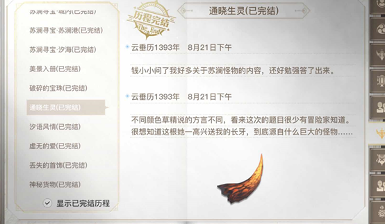 4、最后即可获取藏品未知长牙。