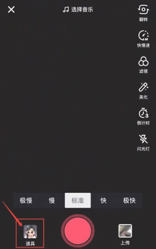6、选择了好看的滤镜和美化面部之后,我们还可以选择拍摄页面左下角的“道具”。
