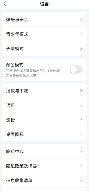 1、打开爱奇艺app,点击右下角“我的”,往下滑找到“设置”,如图所示。