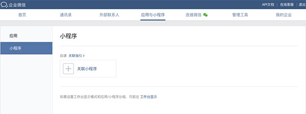 一是前往企业微信管理后台-进入应用与小程序-小程序-关联小程序