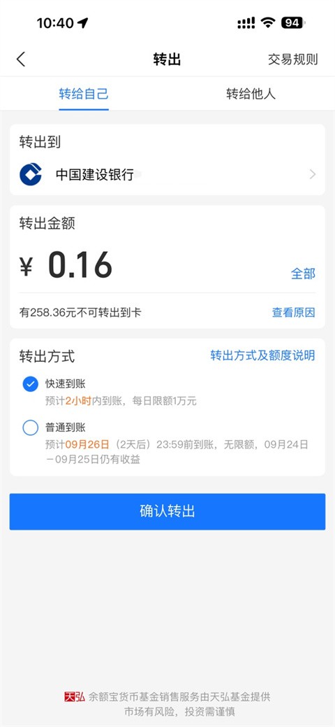 4、将刚刚转入的钱转出到银行卡中;