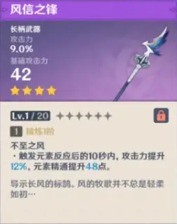 以上便是小编为大家带来的原神风信之锋满级属性介绍,和申鹤、赛诺比较适配,相信现在你已经了解到了长柄武器风信之锋的属性,更多武器属性敬请关注psp游戏网手游网。