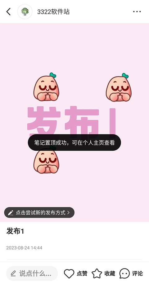 4、提示【笔记置顶成功】,可在个人主页查看。