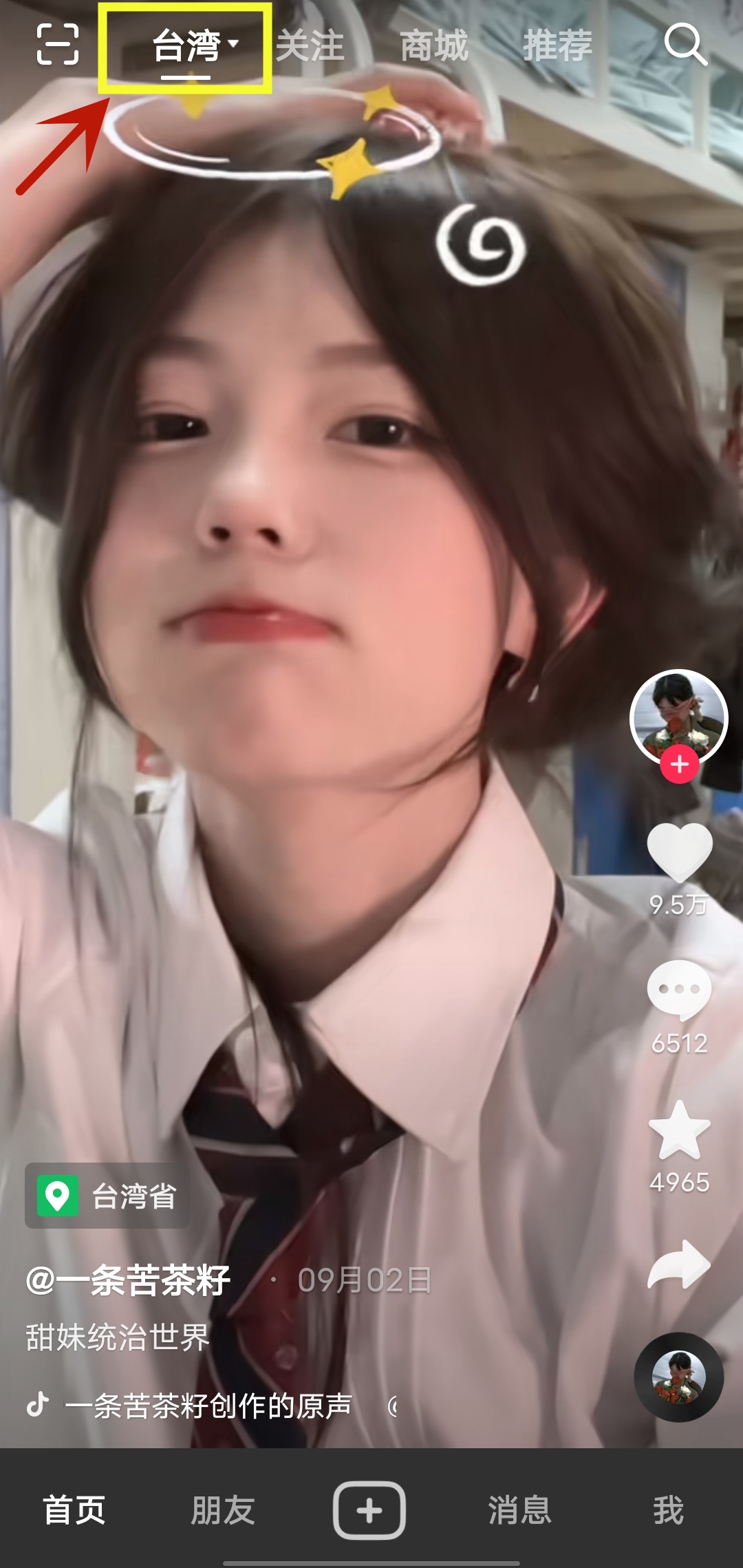 例如切换为“中国台湾”,就可以刷到许多台湾甜妹的抖音视频啦!