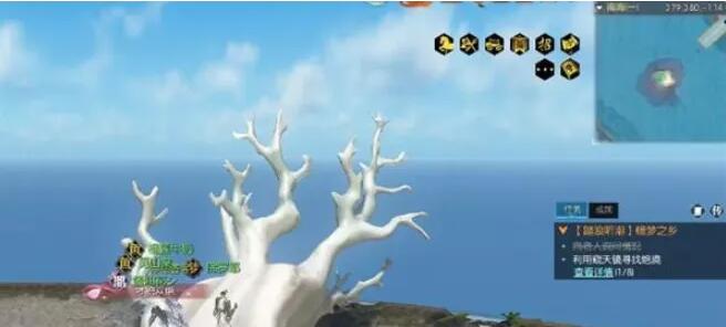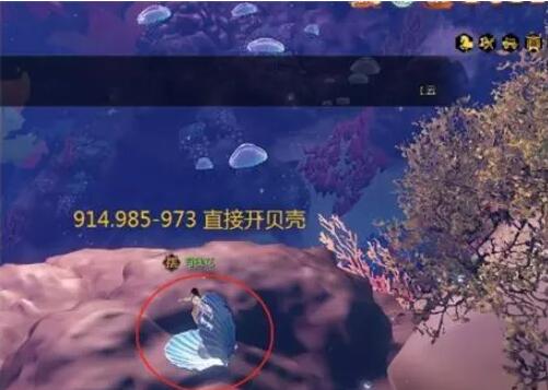 我们传送到海底,然后来到(726,1568-233)这个位置,打开这个贝壳,需要通过三个鱼身上的泡泡才能打开,打开后即可完成南海探秘。