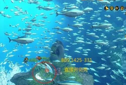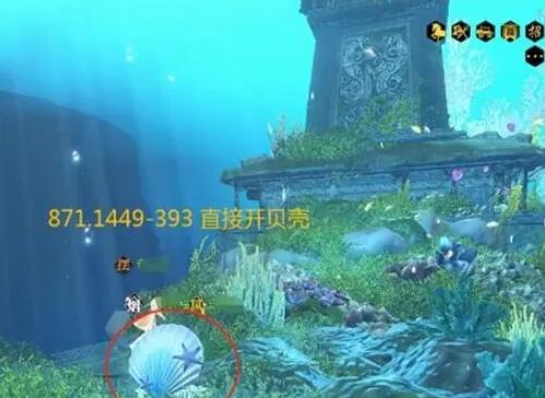 1,、位置(809,1425-331)游到此处直接在这里开贝壳,然后就能传送到魔鬼鱼或者琼华遗址,最后游过去即可。
