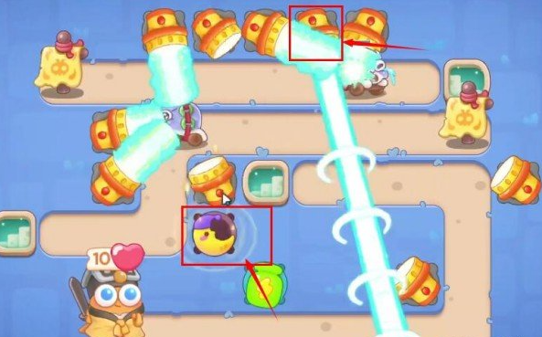 5、第四波上方加两个手电筒,这一波实现障碍物全清理,有金币之后把所有手电筒全部升满级。