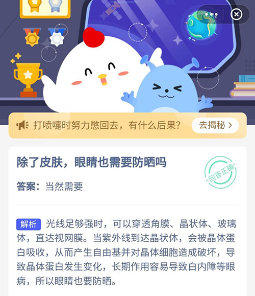 以上就是关于除了皮肤,眼睛也需要防晒吗?这个问题的正确答案,获取答案的小伙伴赶紧去领取自己的小鸡饲料吧,明天也会持续为你更新哦。