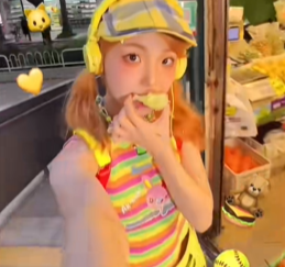 2、这类穿搭的特点非常明确,服装的颜色非常鲜艳明亮,并且会搭配一些可爱的配饰;