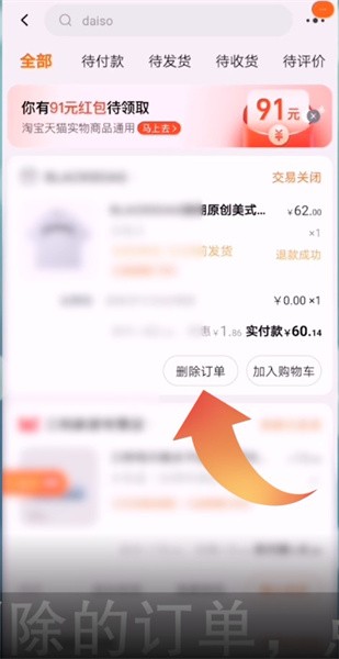 4、找到要删除的订单,点击删除订单,最后点击确定即可。