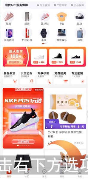 1、打开手机里的识货app,随后点击右下方选项:我的;