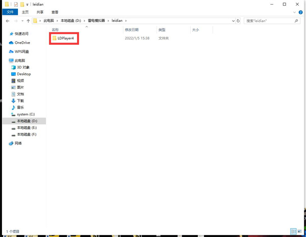 注意:4.0版本的文件夹名并不同于3.0版本,4.0版本雷电模拟器的文件夹名有两层路径,首先进入的文件夹为“leidian”,打开“leidian”文件夹后还有“LDPlayer4”,这个就是模拟器覆盖路径,在“我的电脑”上搜索“LDPlayer4”即可找回4.0版本升级前未覆盖的数据。
