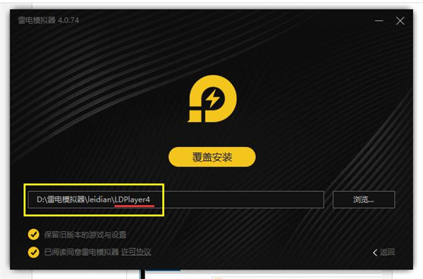 其一是正常情况下,选中以前旧版本模拟器的路径位置时,会显示保留旧版本的游戏与设置,然后点击覆盖安装即可。其实一般都会显示直接覆盖的不需要浏览,以防万一还是可以先浏览选择覆盖安装的路径。