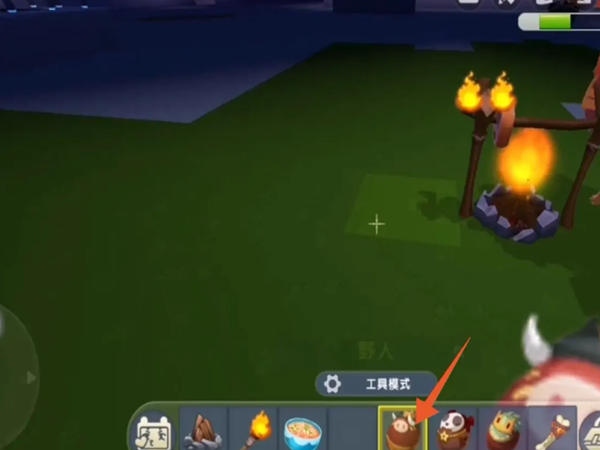 3、附近的野人闻道烤肉的味道就会聚集过来然后围绕篝火跳舞。(时间需要等到晚上)
